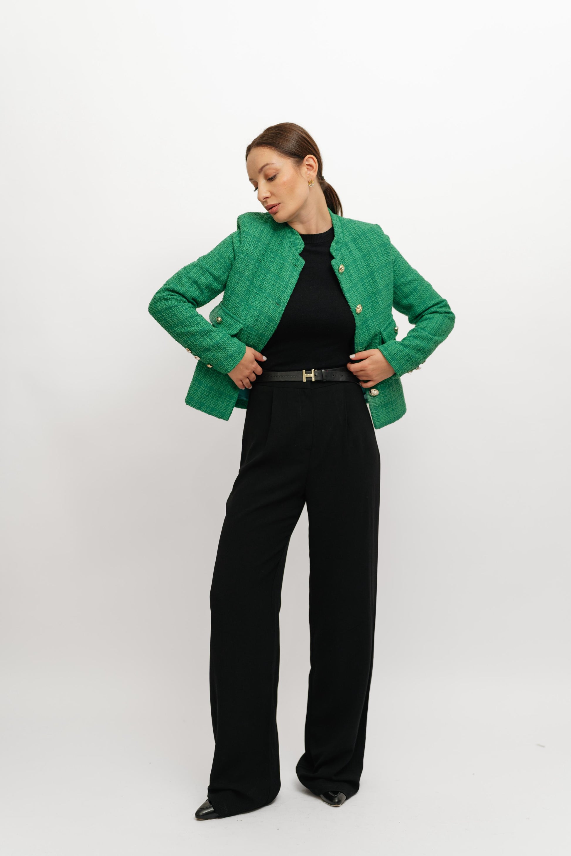 Textured Cropped Green Blazer