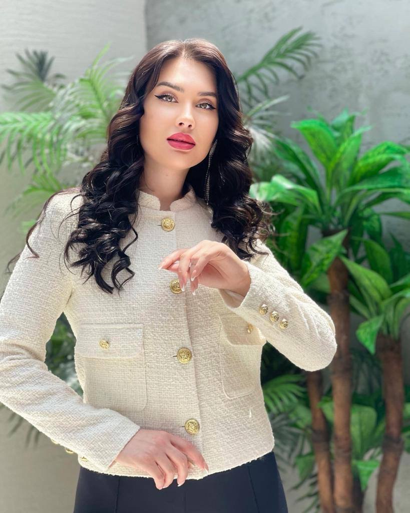 Textured off-white cropped blazer
